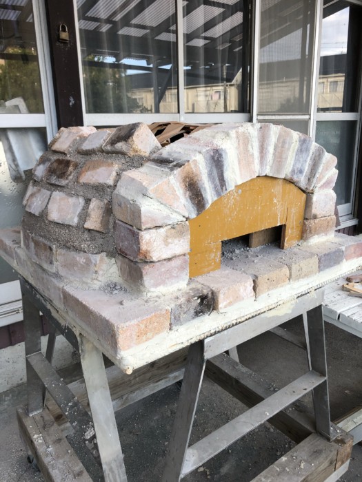 だんだん窯らしくなってきた。耐火モルタルもけっこう使います。もう少しで完成です。