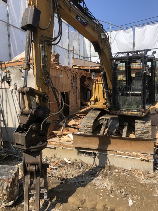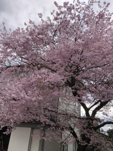 最近解体の仕事が多い。事務所の桜満開です。従業員と外注の職人さんと花見やります。